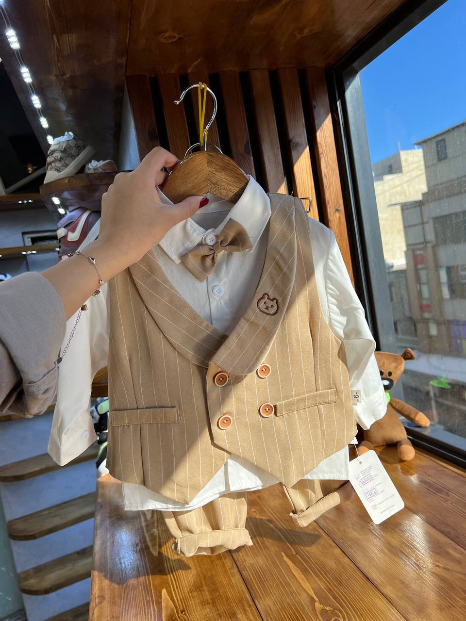 ۴ تکه شامل پیراهن،شلوار، ژیله و پاپیون